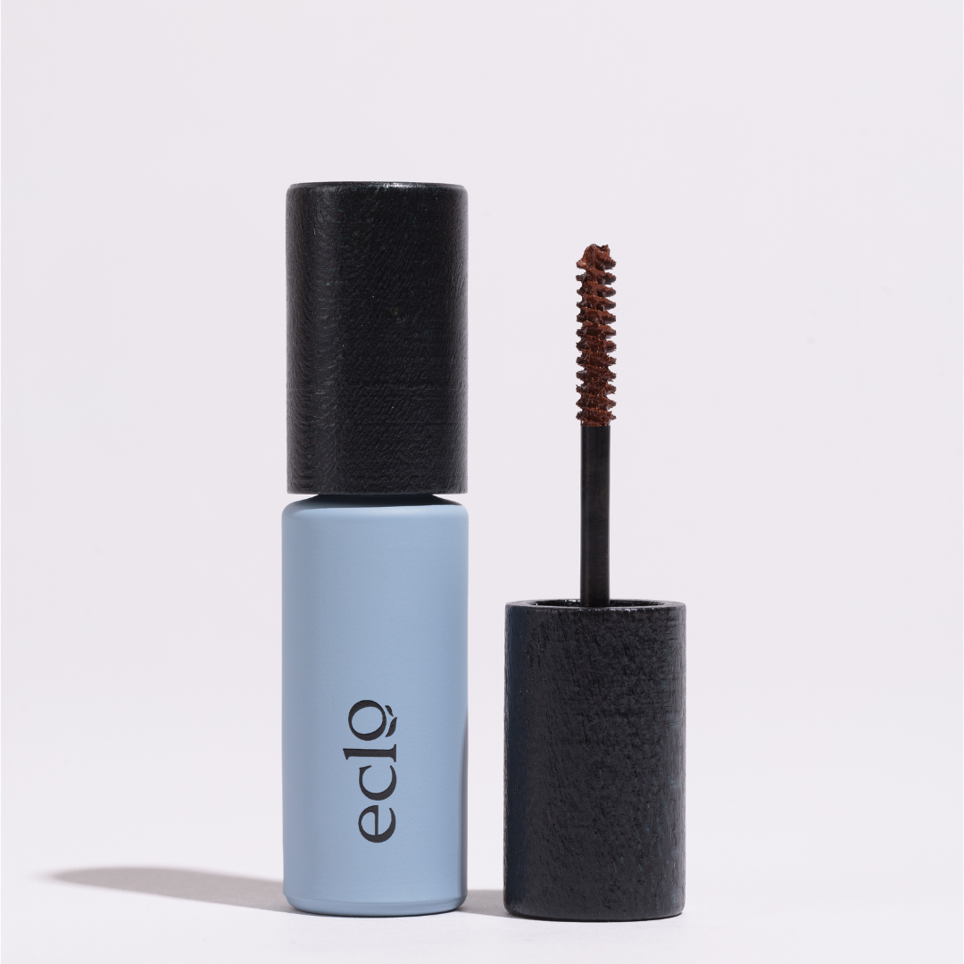 Eclo's Mascara Marron Chaud (Warm Brown Care Mascara) met biologische hazelnootolie voor de voedende en verstevigende werking. Het geeft je volume en ultra-definitie voor een intense look die je natuurlijke schoonheid benadrukt.
